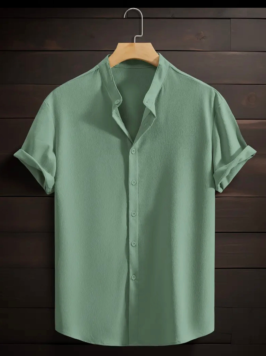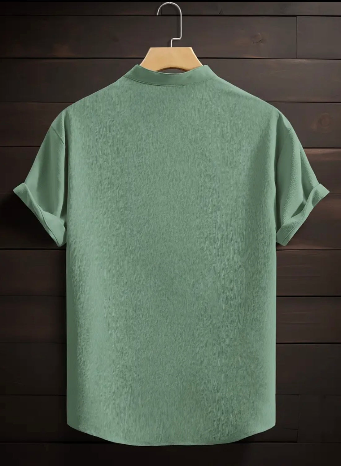 Step into effortless summer style with this Men’s Summer Breeze Green Button-Up Shirt, crafted from breathable polyester that keeps you cool all day. Its stand collar and clean short-sleeve design offer a modern, relaxed look perfect for daily wear or beach vacations. If one seeks a versatile piece that brings a fresh, confident presence to any summer outing, this shirt is the ideal choice.
