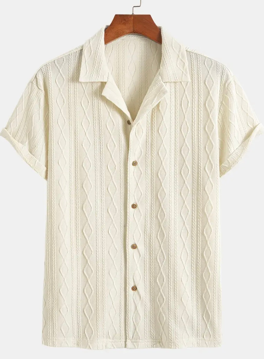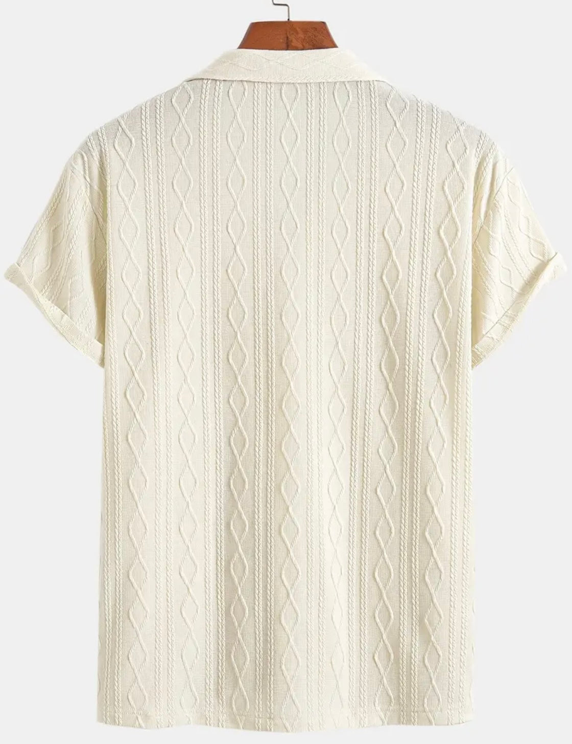 Step into refined ease with this modern beige button-up polo, crafted in a stretch knit rhombus pattern that adds depth without sacrificing breathability. Its lightweight, soft texture keeps you comfortable during your daily commute while maintaining a sharp, clean silhouette that aligns effortlessly with street style and young professional wardrobes. Versatile enough to pair with tailored trousers or relaxed denim, it is the piece that quietly elevates your everyday look without trying too hard.