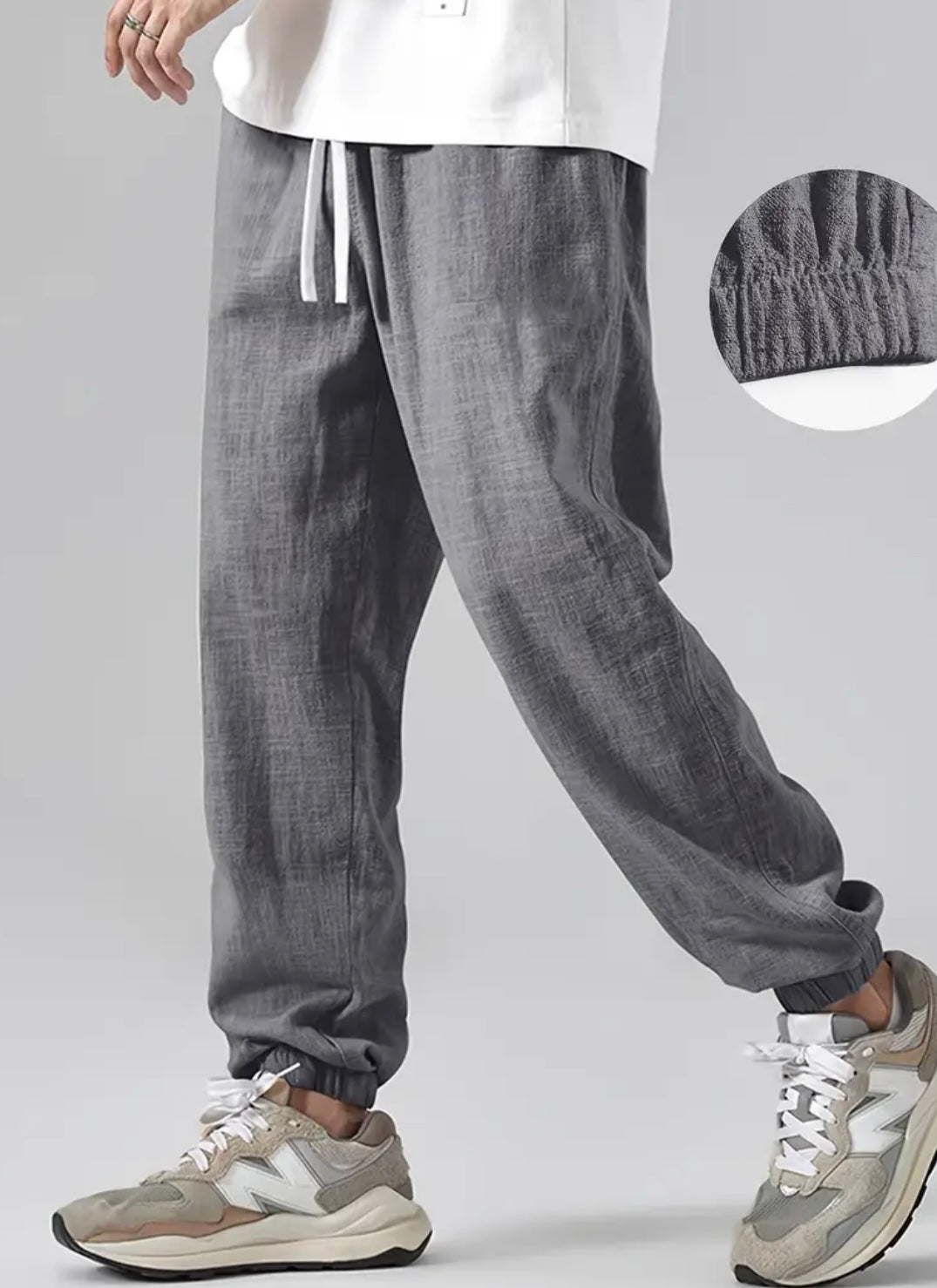 Refresh your wardrobe with these Men’s Casual Linen Joggers, crafted in a modern grey with crisp white drawstrings for a clean, versatile look. Their breathable, comfort fit design with pockets ensures ease for everyday wear, across all seasons, from relaxed spring mornings to crisp autumn evenings. These joggers are the perfect addition for those who value modern comfort and effortless style in every step.