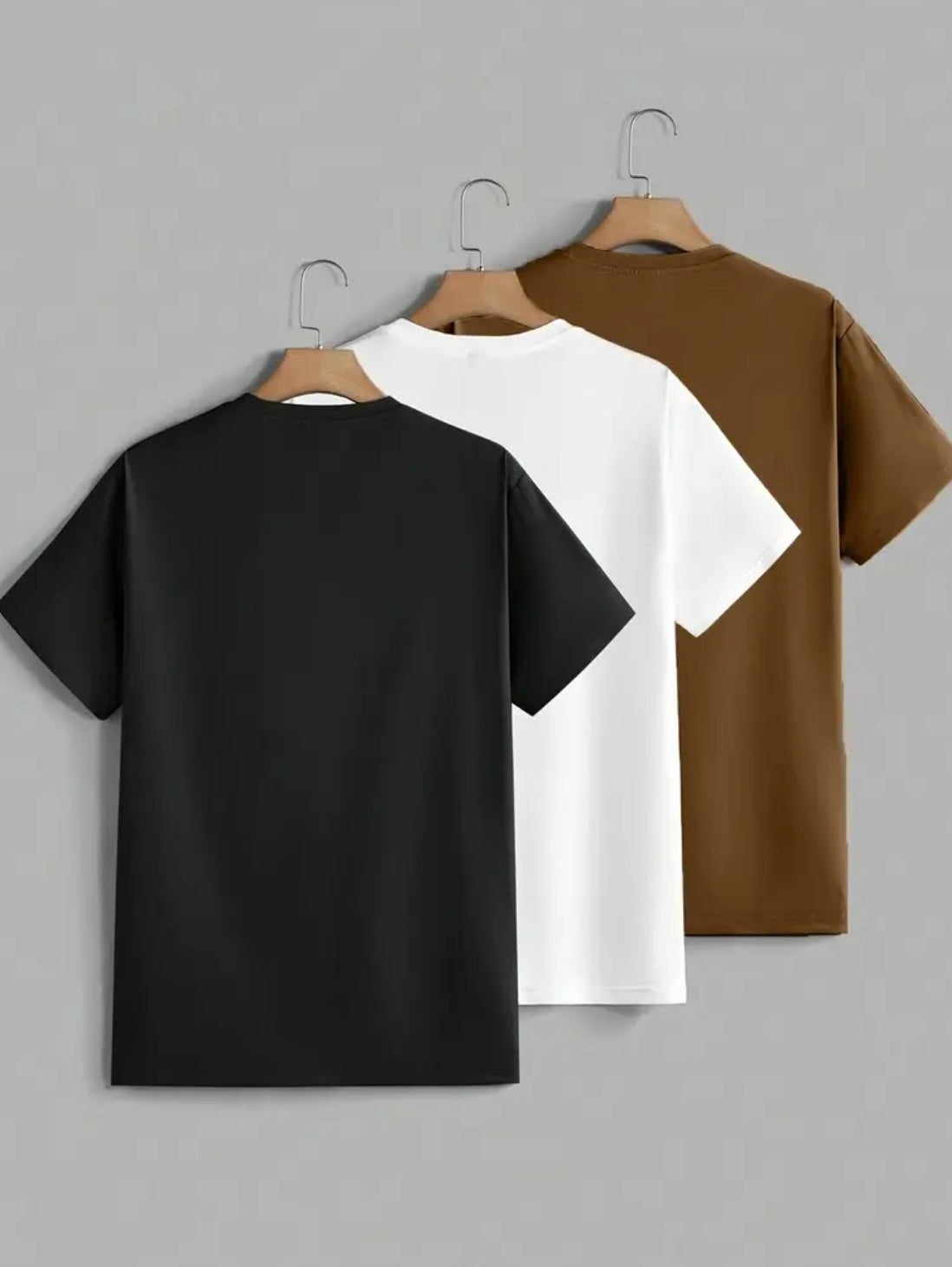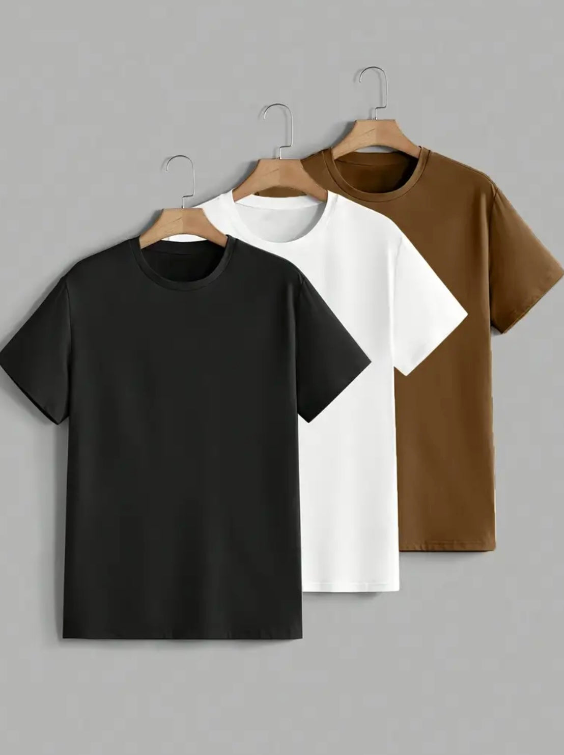 These modern polyester t-shirts come in a versatile pack of black, white, and beige, allowing seamless pairing with any outfit while keeping your style clean and sharp. Their breathable, durable fabric ensures comfort all day, whether going out or relaxing at home. If you want a reliable, stylish staple to elevate your daily rotation, this set delivers effortless quality in every color you need.