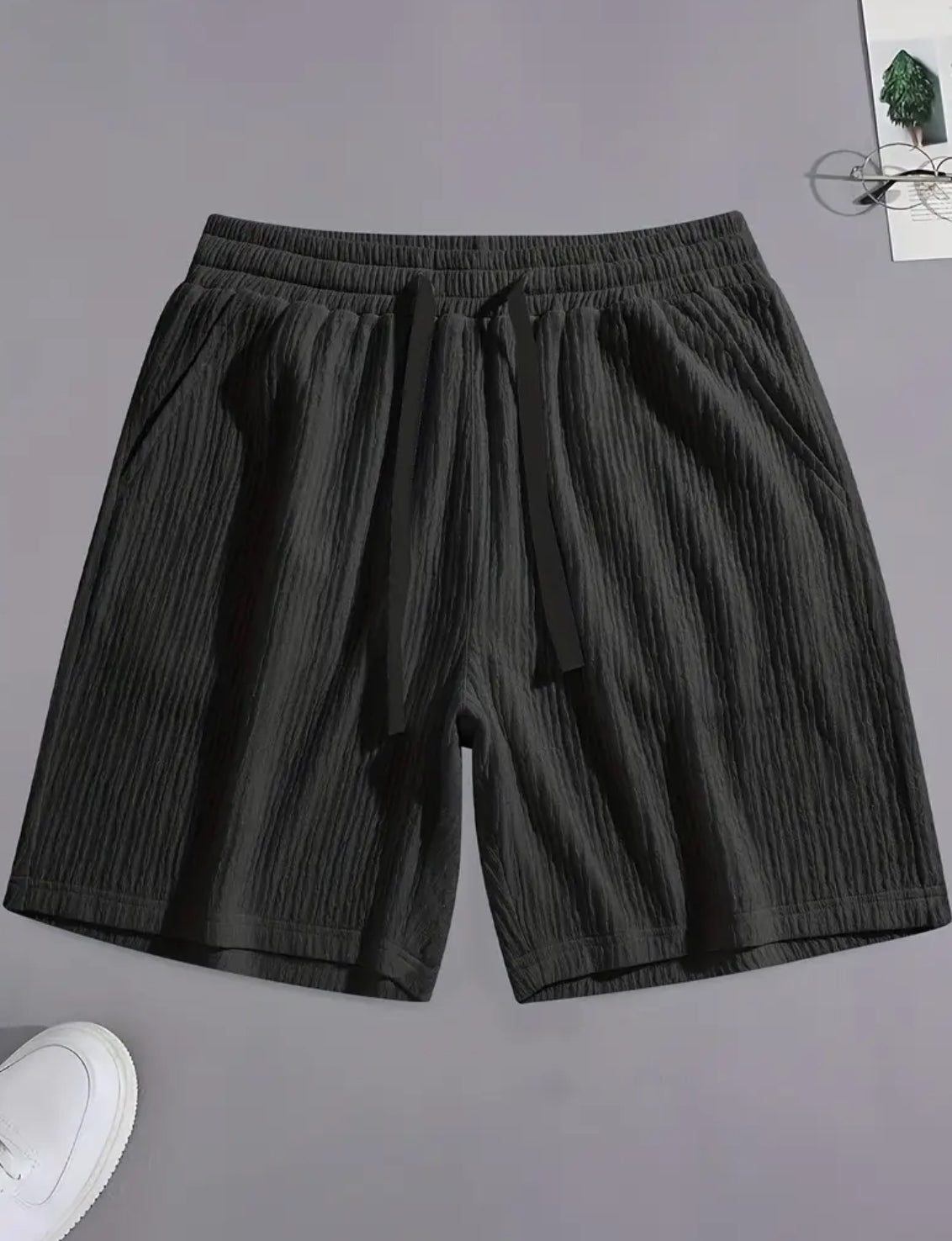 Stay cool and refined this summer with these Men’s Regular Fit Pleated Solid Black Shorts, designed with a breathable ice-feel fabric that drapes comfortably for all-day freshness. Featuring a drawstring waist and functional pockets, they offer both style and practicality for home leisure, date nights, or everyday errands. These versatile shorts elevate any summer outfit, ensuring a clean, classic look that transitions seamlessly across every scene.
